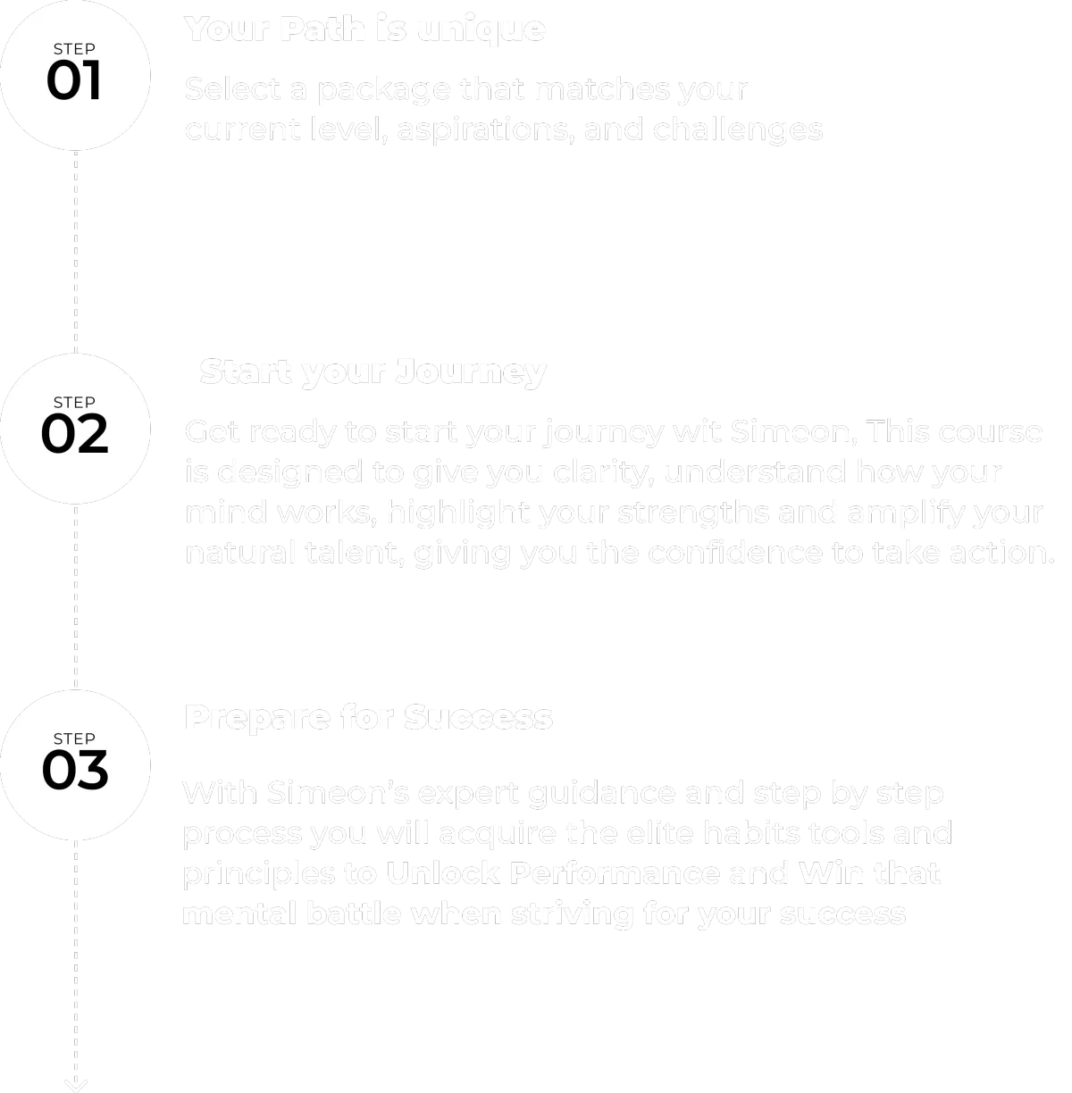 Our most comprehensive offering brings together all the insights and tools from the previous levels and then some. Dive deep into every module, from setting clear goals to entering that zone where you're playing at your best. The bonus module 'How to Win at Everything You Do' is the playbook for those aiming for the pinnacle of success. With a personal touch, benefit from a coaching call with Simeon to address your unique challenges and aspirations.